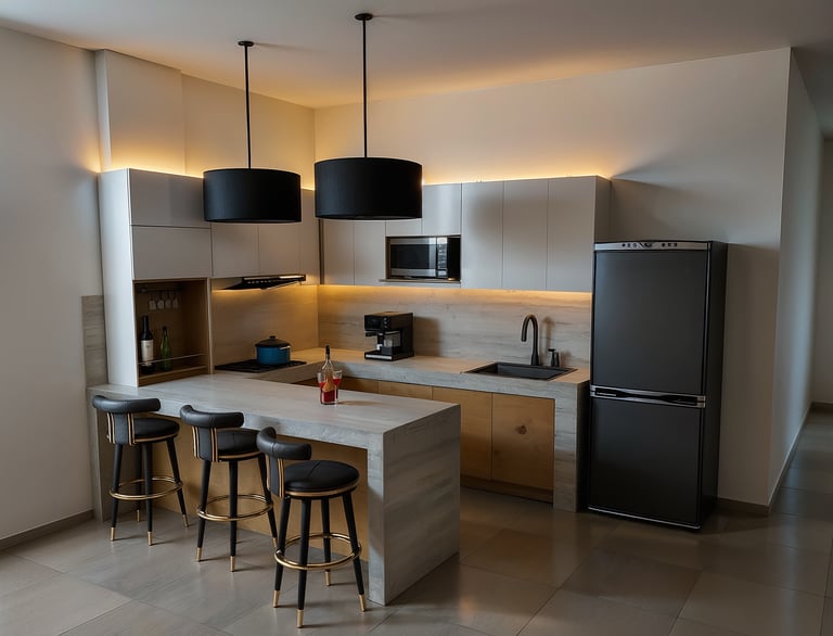 We design and build modular cabinets, install interior finishings, and complete fit‑outs that are thoughtfully tailored to your lifestyle—combining practical functionality, clean craftsmanship, and a modern aesthetic that transforms your space